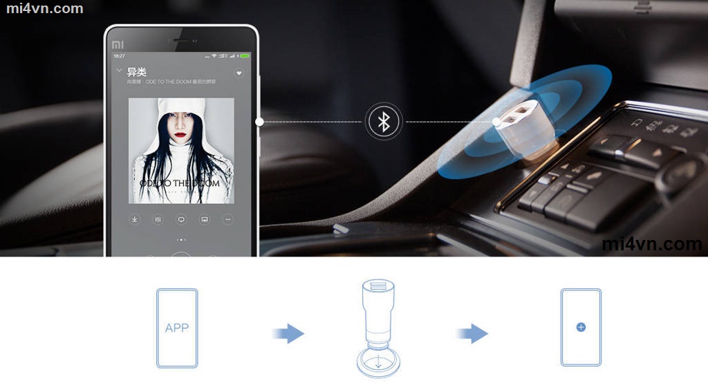 Chơi nhạc Bluetooth trên xe hơi kết hợp Sạc điện thoại trên xe hơi.