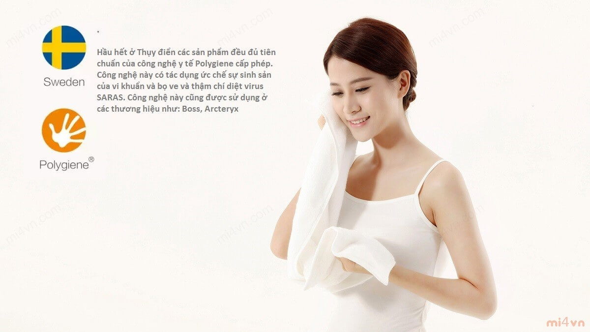 hiện sản xuất theo quy trình nghiêm ngặt theo tiêu chuẩn kháng khuẩn của Thụy Điển, Polygiene.