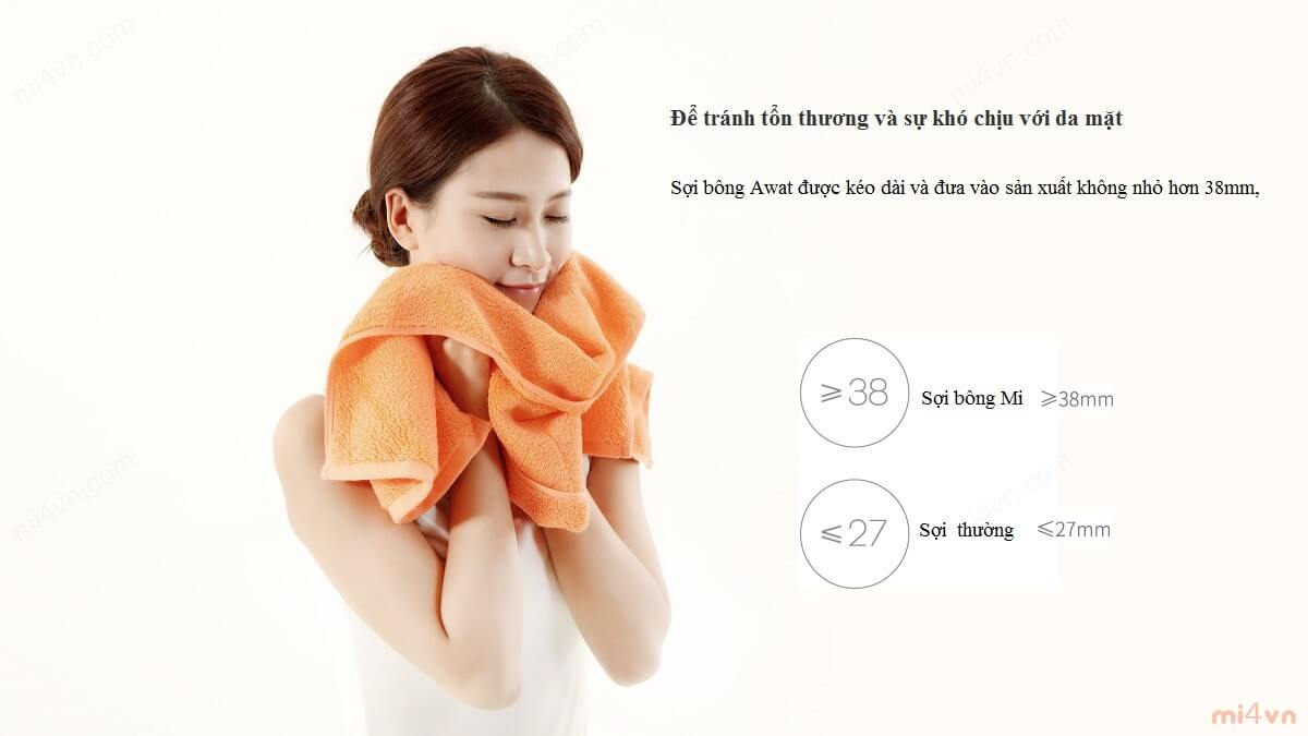 Để tránh tổn thương và sự khó chịu của da mặt. Sợi bông Awat được kéo dài và đưa vào sản xuất không nhỏ hơn 38mm, sợi được đảm bảo tỷ lệ gần như bằng không. Sợi Khăn mặt bông nguyên chất Xiaomi ZSH >=38mm. Sợi khăn bông thông thường là <=27mm