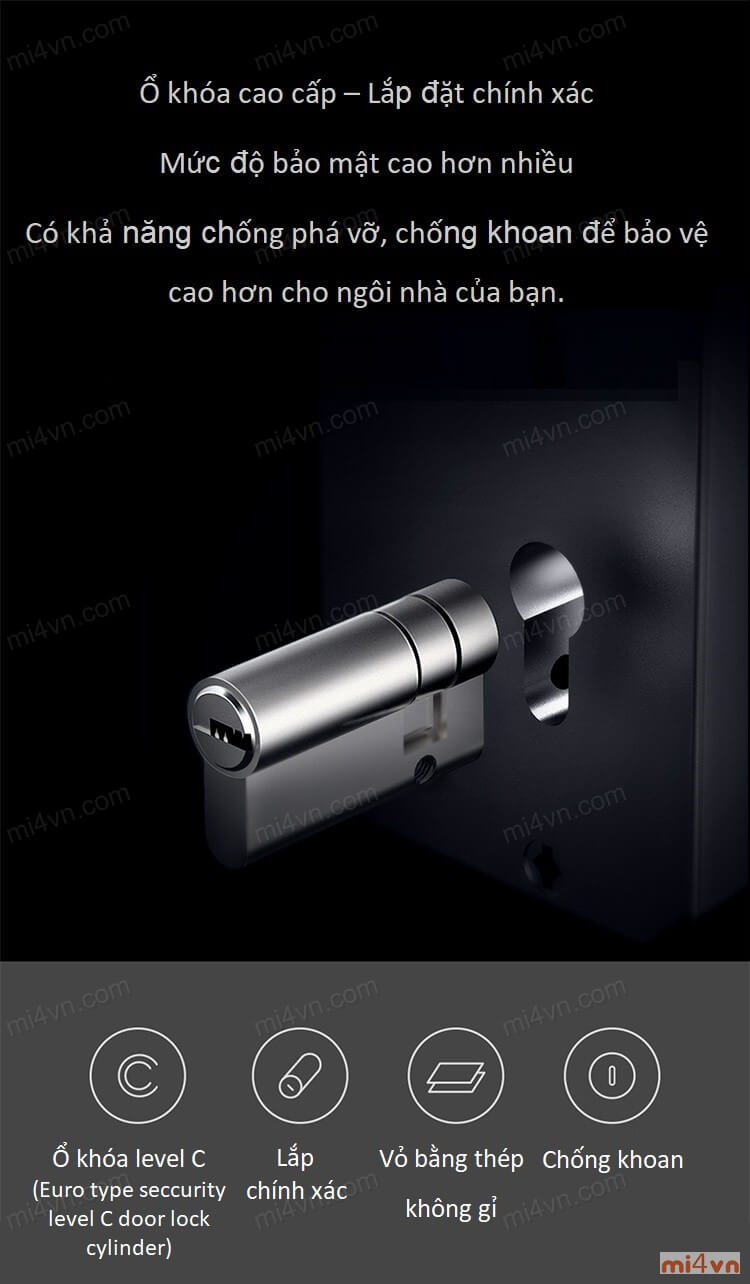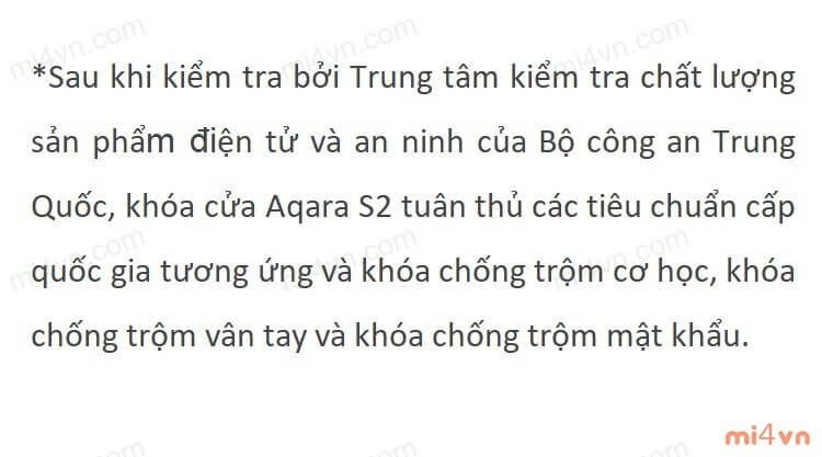 Về mặt bảo mật,khóa thông minh Aqara S2 thông qua lõi khóa Level C, lõi khóa đi kèm với thiết kế chống trộm, chống trộm, khi gặp phải sự cố hoặc khoan phá, khóa cửa báo động ngay lập tức và gửi thông báo khẩn cấp đến điện thoại chủ nhà thông qua App MiHome.