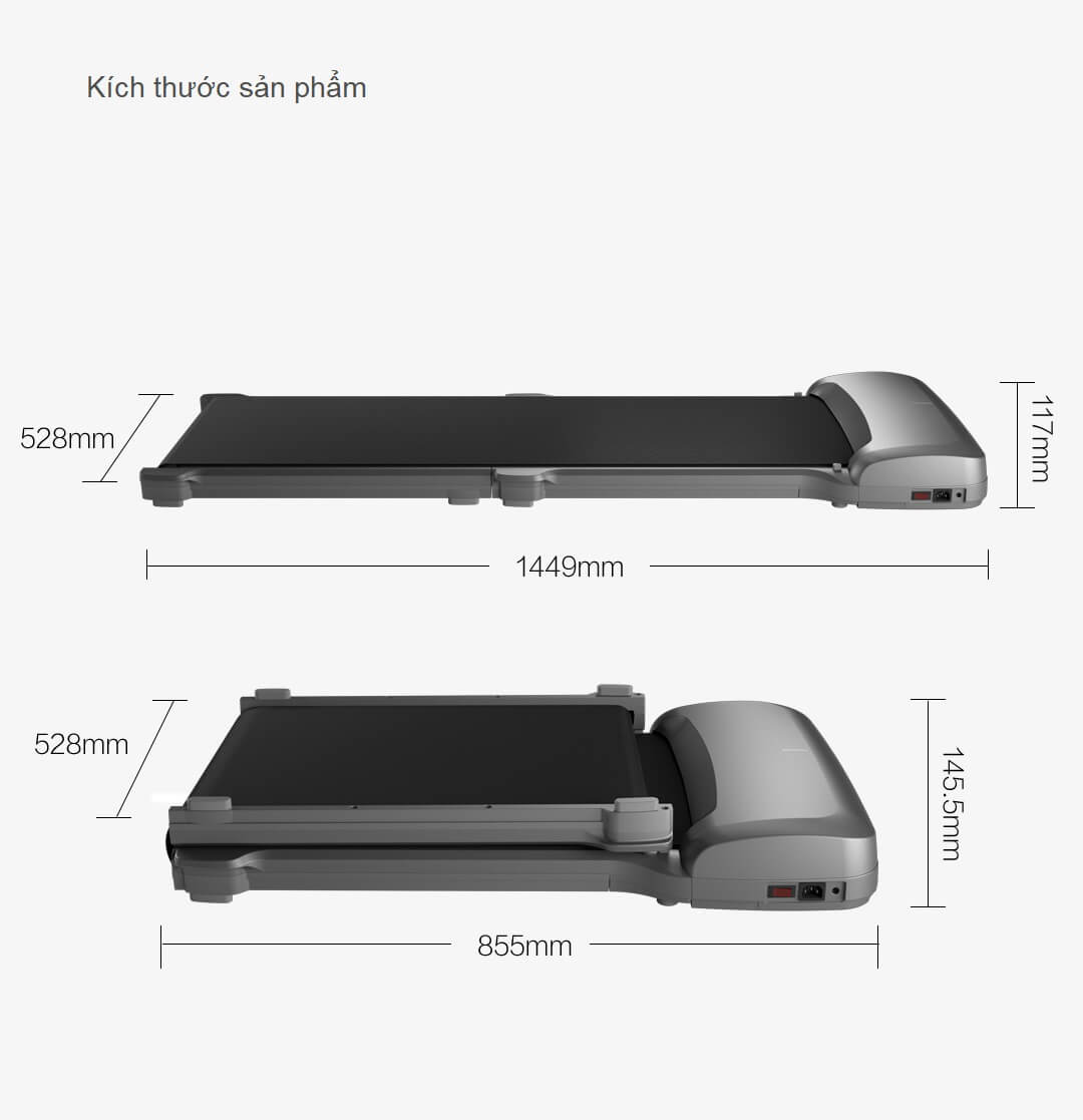 Kích thước khi sử dụng: 1449 x 528 x117mm
