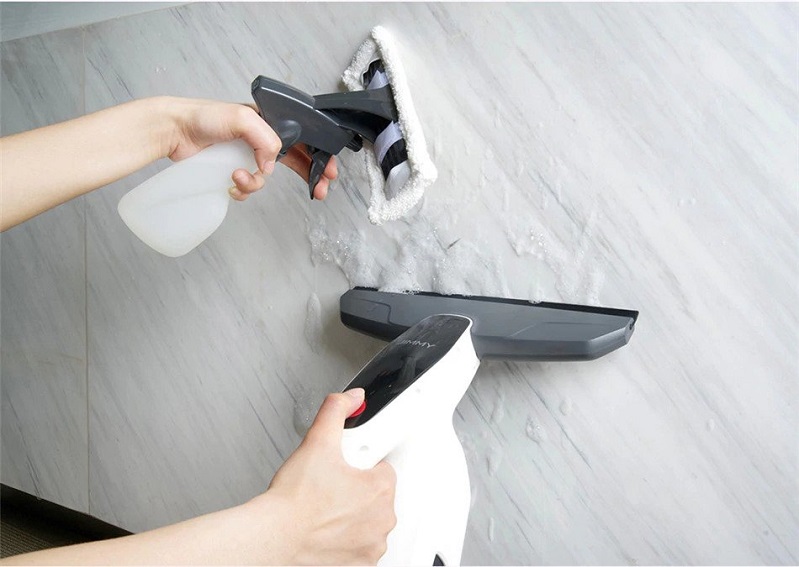 Đóng gói sản phẩm gồm: Máy hút bụi x 1; cáp USB x 1; bình nước x 1; đầu lau x 1; hướng dẫn sử dụng x 1