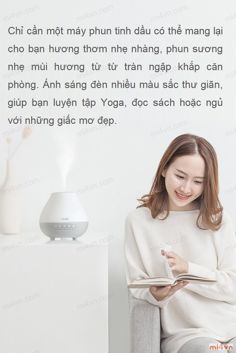Chỉ cần một máy phun tinh dầu có thể mang lại cho bạn hương thơmnhẹ nhàng, phun sương nhẹ mùi hương từ từ tràn ngập khắp căn phòng. Ánh sángđèn nhiều màu sắc thư giãn, giúp bạn luyện tập Yoga, đọc sách hoặc ngủ với nhữnggiấc mơ đẹp.