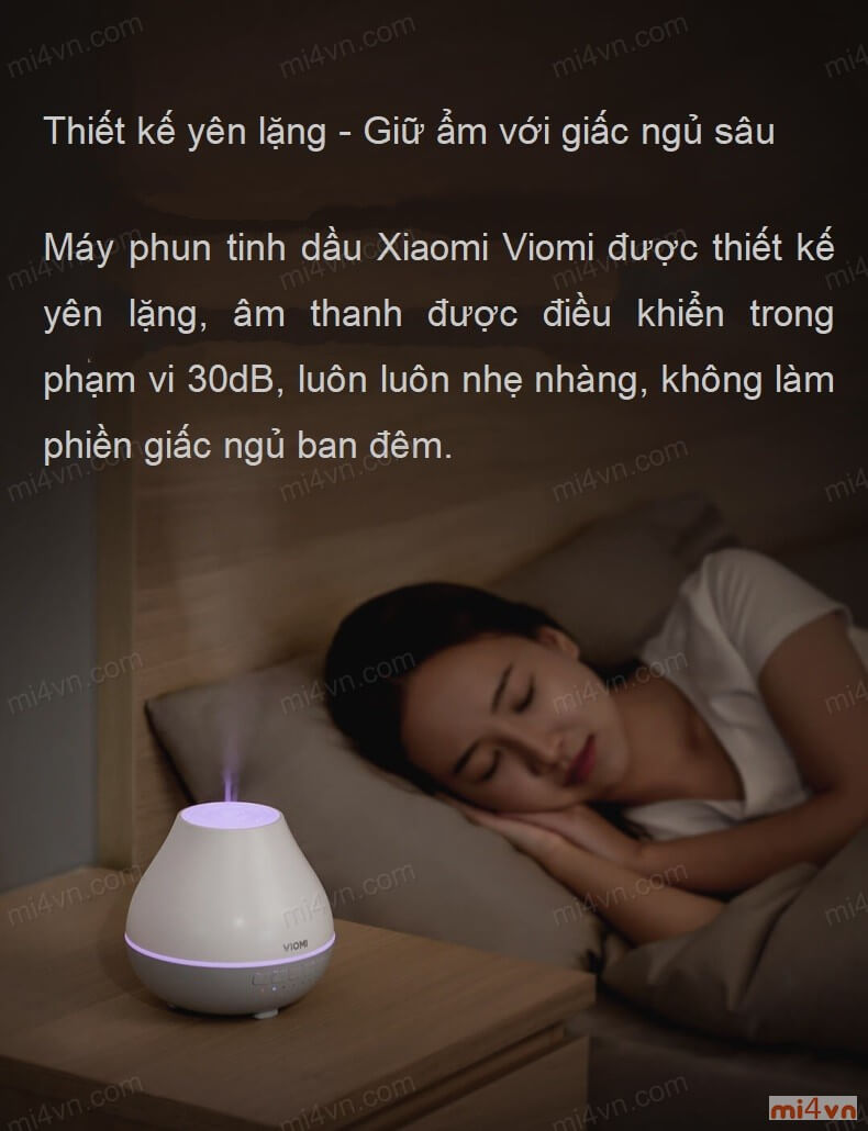 Máy phun tinh dầu Xiaomi Viomi được thiết kế yên lặng, âm thanhđược điều khiển trong phạm vi 30dB, luôn luôn nhẹ nhàng, không làm phiền giấcngủ ban đêm.