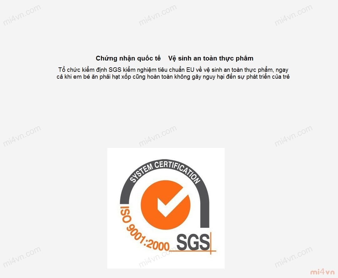 Sofa lười Xiaomi 8H được MUJI giám sát chất lượng để đảm bảo quá trình sản xuất đạt chất lượng tiêu chuẩn. Sản phẩm được Tổ chức kiểm định SGS kiểm nghiệm tiêu chuẩn EU về vệ sinh an toàn thực phẩm, ngay cả khi em bé ăn phải hạt xốp cũng hoàn toàn không gây nguy hại đến sự phát triển của trẻ