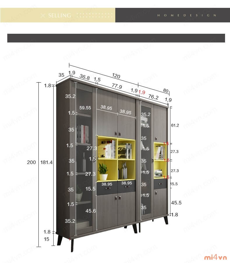 Kích thước tủ Đôi: dài x rộng x cao = 120cm x 35cm x 200cm